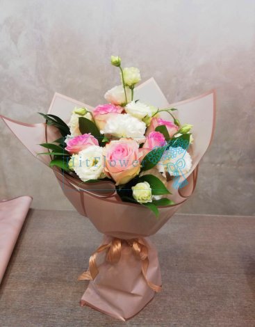 Нежный букет из роз и эустомы.